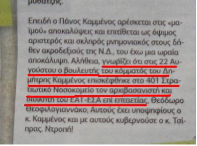 Αυτό ακριβώς είναι που συμβαίνει: Οσοι αγανάκτησαν εκ των υστέρων με όσα είχε γράψει ο Καμμένος είναι οι ίδιοι που τον έχουν χειροκροτήσει στις αντικομμουνιστικές κορόνες του. Είναι αυτοί που έσπευσαν να υιοθετήσουν προβοκάτσιες για τα «ρόλεξ» του Κουτσούμπα, είναι οι ίδιοι που υποστηρίζουν ότι οι απεργίες κλείνουν τα εργοστάσια, έχουν αλλεργία για το εργατικό - λαϊκό κίνημα, θέλουν το λαό εγκλωβισμένο σε κάλπικες διαχωριστικές γραμμές π.χ. «μνημόνιο - αντιμνημόνιο», χειροκροτητή διάφορων εκδοχών της αστικής πολιτικής. Σ' αυτήν τη σούπα όλοι οι καλοί χωράνε γιατί όχι και ο Καμμένος. Εδώ χωράει η Τζάκρη, που, έχοντας ψηφίσει τρία μνημόνια, αποφάνθηκε πως «το ΚΚΕ δεν έχει καμία σχέση με το λαό», αφού είχε ήδη - πριν μεταπηδήσει στον ΣΥΡΙΖΑ - αποφανθεί ότι «ο λαός έδωσε την εξουσία σε ΝΔ - ΠΑΣΟΚ γιατί δεν πιστεύει ότι υπάρχουν μαγικές λύσεις», αντίθετα με το ΚΚΕ, που, όπως είπε, «είναι συνεπές στον σταλινισμό».